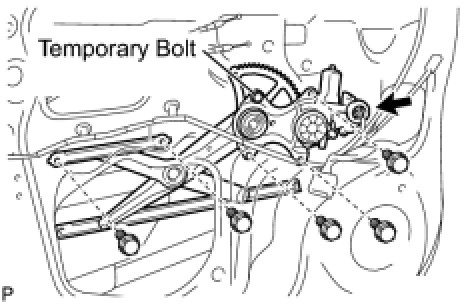 Do not remove the temporary bolt. If the temporary bolt is removed, the front door window regulator may fall and cause damage.