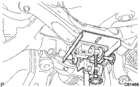 (a) Support the rear suspension member using a jack and wooden block.