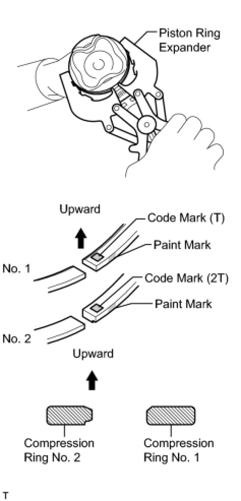 * Install the compression ring No. 2 with the code mark (2T) facing upward.