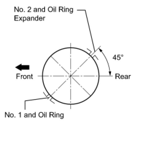 (c) Position the piston rings so that the ring ends are as shown in the illustration.