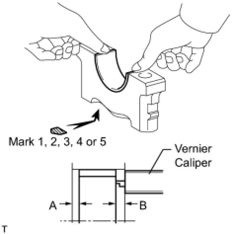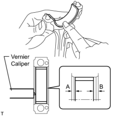 (2) Using a vernier caliper, measure the distance between the bearing cap edge and the lower bearing edge.