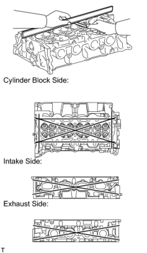 (a) Using a precision straightedge and a feeler gauge, measure the surfaces contacting the cylinder block and the manifolds for warpage.