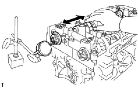 (b) Using a dial indicator, measure the thrust clearance while moving the camshaft back and forth.