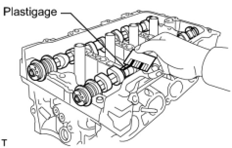 (c) Lay a strip of Plastigage across each of the camshaft journals.