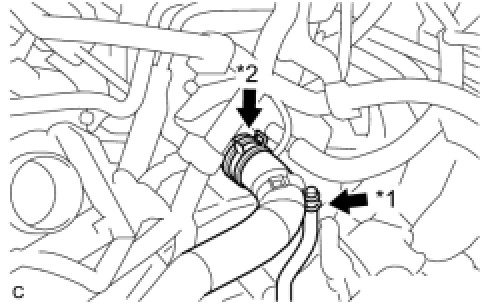 (b) Disconnect the No. 1 radiator hose from the cylinder head with the clamp*2.