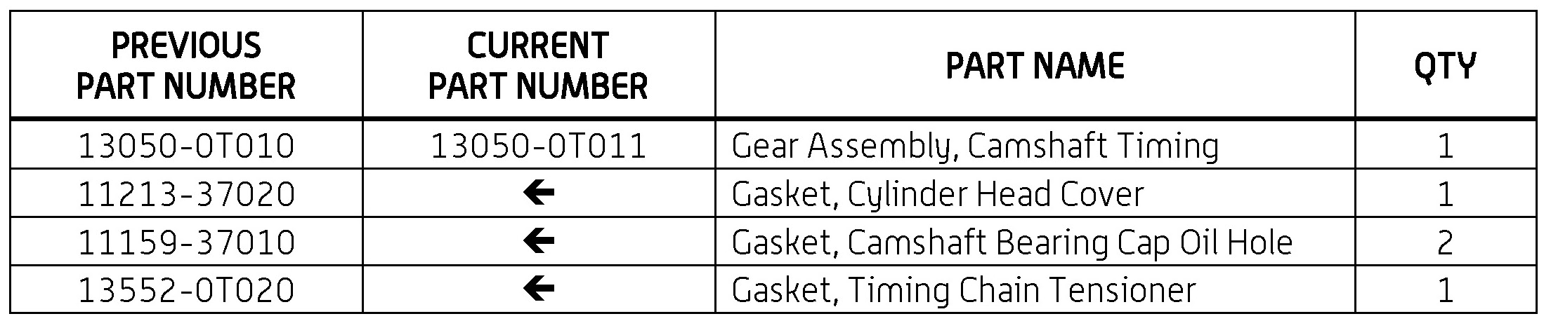 - Parts Information has been updated (Camshaft Timing Gear Assembly).