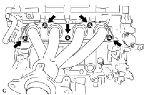 (b) Install the exhaust manifold with the 5 nuts.