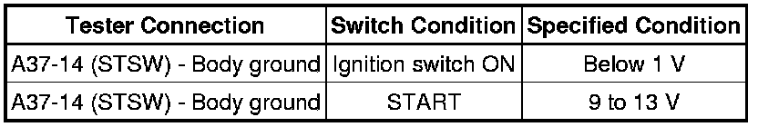 (g) Check the result when the ignition switch is turned ON and START positions.