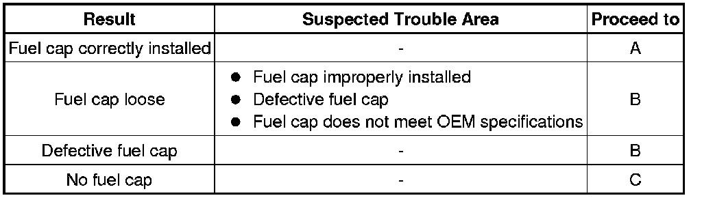 (a) Check that the fuel cap is correctly installed and confirm that the fuel cap meets OEM specifications.