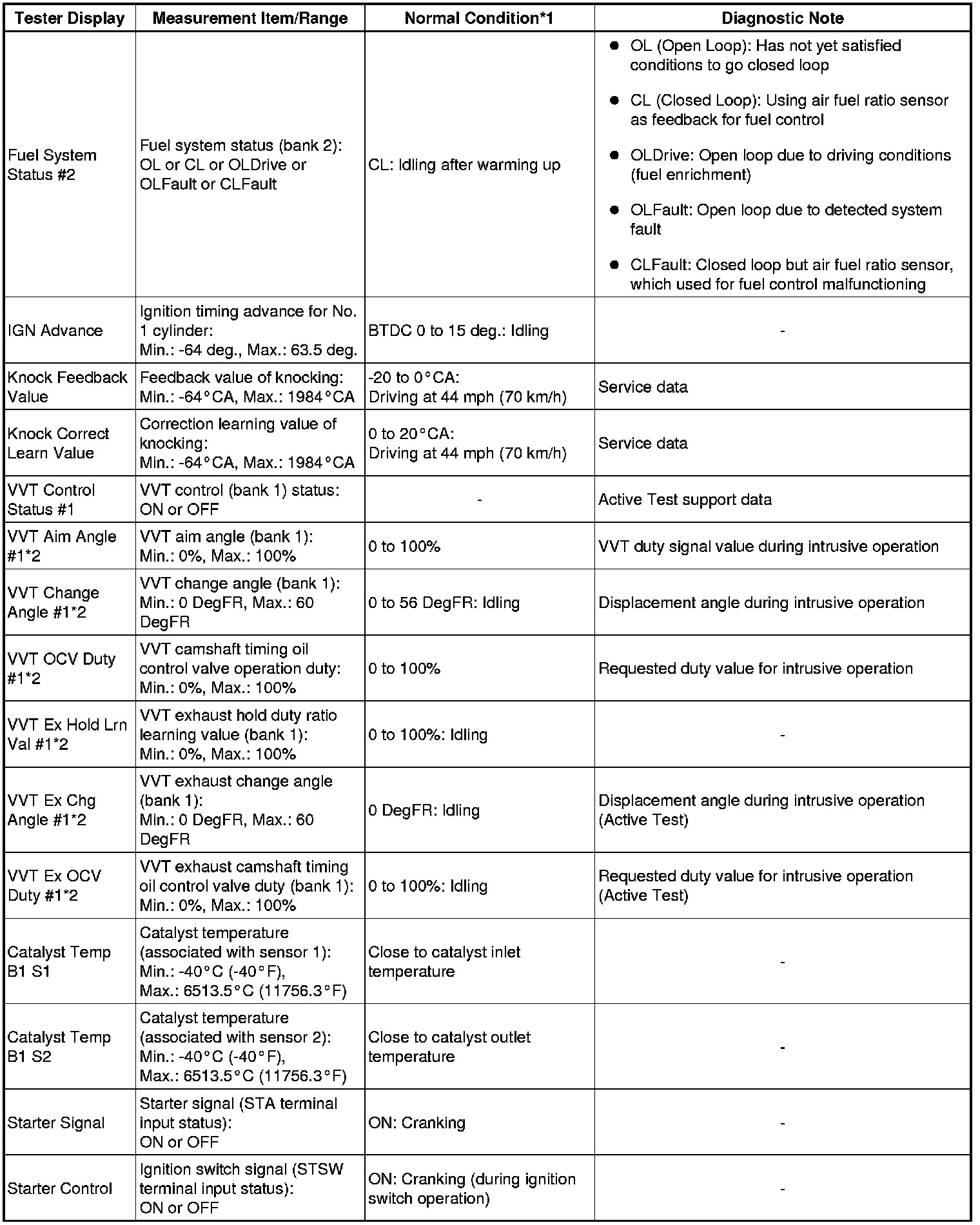 * *2: Values are only displayed when performing the Active Tests: Control the VVT Linear (Bank1). For other Active Tests, the value will be 0.