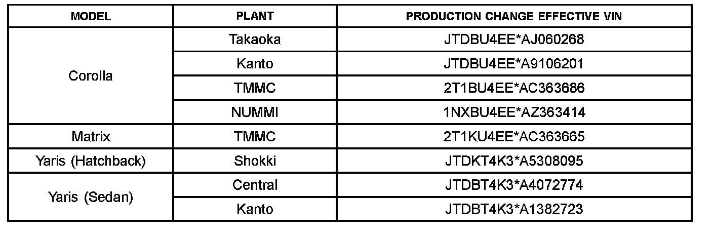 This TSB applies to vehicles produced BEFORE the Production Change Effective VINs shown.