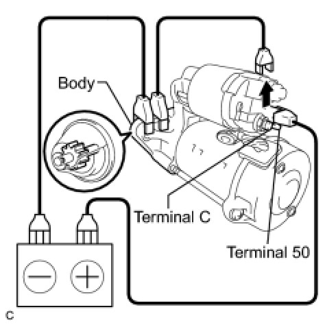 (1) Check that the pinion gear does not return inward after the cable is disconnected from terminal C.