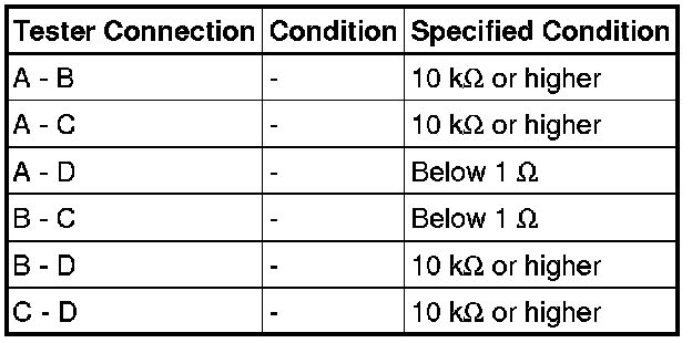 (2) If the result is not as specified, replace the magnet starter switch assembly.