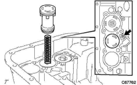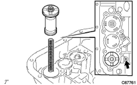 (a) Apply compressed air (392 kPa, 4.0 kgf/cm2, 57 psi) to the oil hole and remove the C-2 accumulator piston and the spring.