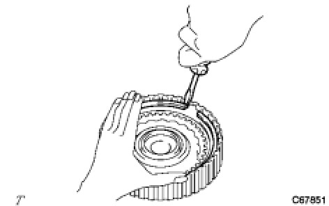 (a) Using SST, a press and a screwdriver, remove the snap ring.