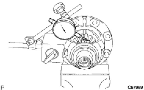 (a) Install the front differential pinion to the front differential case side. Using a dial indicator, measure the front differential side gear backlash.