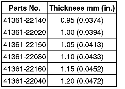 * Measure the thickness with a micrometer to select a proper thrust washer because the thrust washers do not have any distinguishing marks.