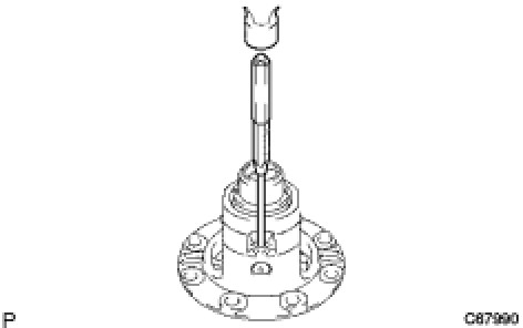 (a) Using a pin punch (dia3 mm) and a hammer, install the front differential pinion shaft straight pin onto the front differential case.