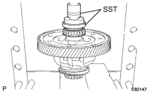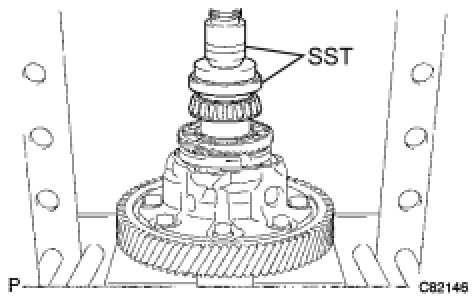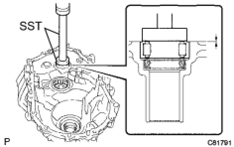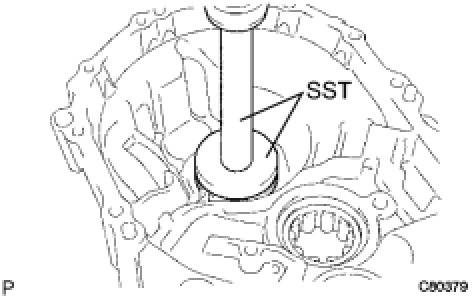 (b) Using SST and a press, install it onto the transaxle case.