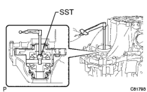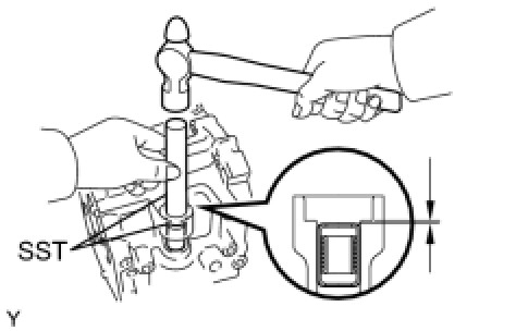(a) Using SST and a hammer, install a new transaxle case oil seal onto the transaxle case.