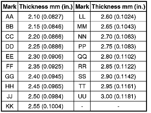 The preload changes by approximately 0.3 to 0.4 N*m (3 to 4 kgf*cm, 2.6 to 3.5 in.*lbf) per each 0.05 mm (0.00197 in.) change in the plate washer thickness.