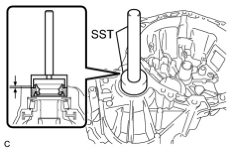 (a) Using SST and a hammer, install a new transmission case oil seal onto the manual transmission case.