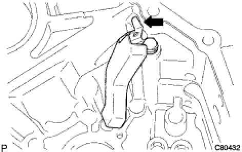 * Install the No. 1 oil receiver pipe while holding it against the manual transmission case as shown in the illustration.