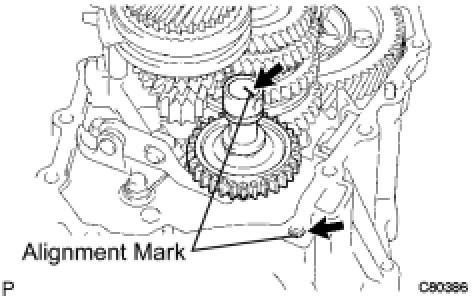 Align the mark on the reverse idler gear shaft with the bolt hole as shown in the illustration.