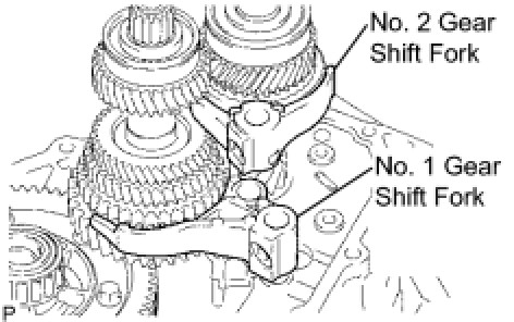 (a) Coat the No. 1 gear shift fork and No. 2 gear shift fork with gear oil and install them.