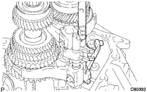 (a) Install the reverse restrict pin assembly onto the manual transmission case.