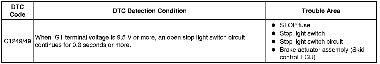 BRAKE CONTROL / DYNAMIC CONTROL SYSTEMS: ANTI-LOCK BRAKE SYSTEM: C1249/49: Open in Stop Light Switch Circuit