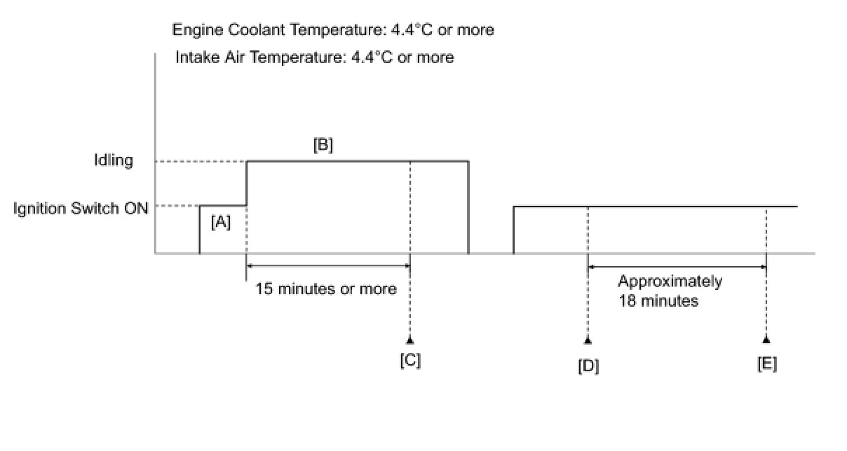 6. Start the engine and wait 15 minutes or more [B].
