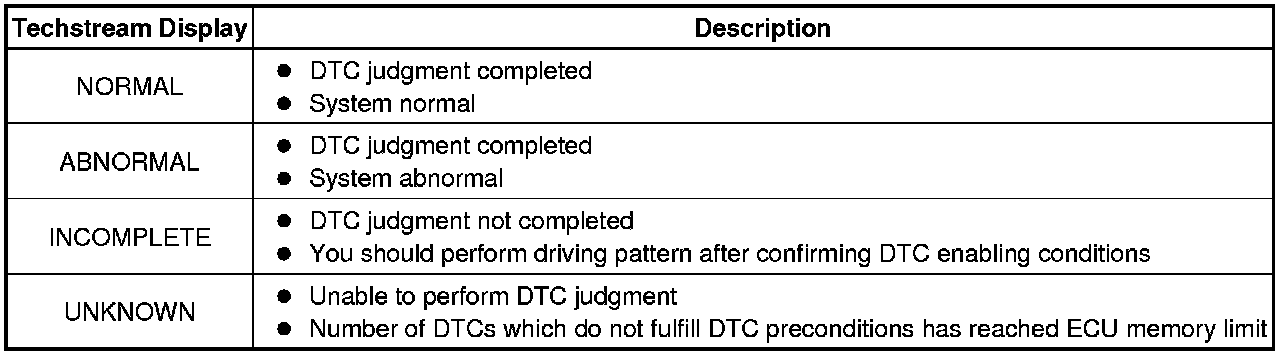 20. If the test result is INCOMPLETE or UNKNOWN and no pending DTC is output, perform a universal trip and check for permanent DTCs DTC Check / Clear.