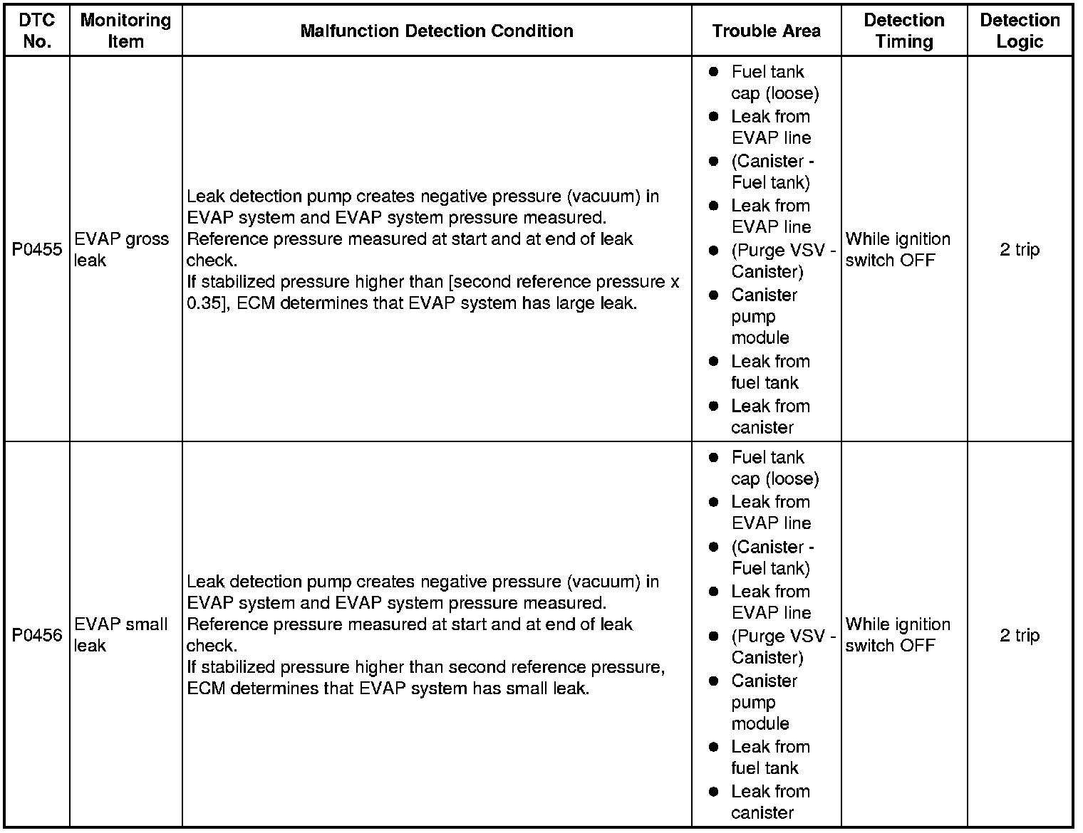 P0455 (Pattern A), P0456: