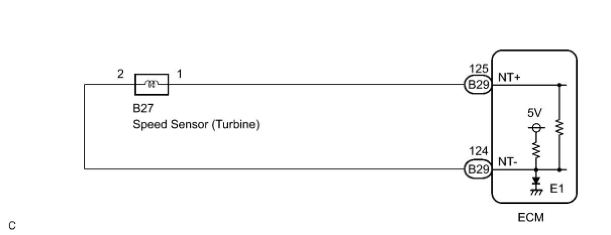 The NT terminal of the ECM detects a revolution signal from the speed sensor (NT) (input RPM). The ECM calculates a gearshift comparing the speed sensor (NT) with the speed sensor (NC).
