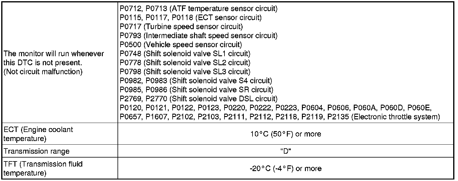 U250E AUTOMATIC TRANSMISSION / TRANSAXLE: AUTOMATIC TRANSAXLE SYSTEM: P0741: Torque Converter Clutch Solenoid Performance (Shift Solenoid Valve DSL)
