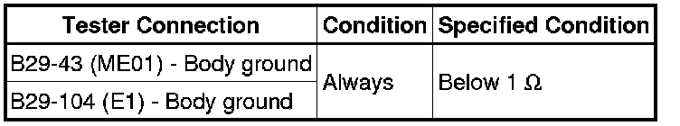 NG -- REPAIR OR REPLACE HARNESS OR CONNECTOR (TERMINAL E1 AND ME01 - BODY GROUND)