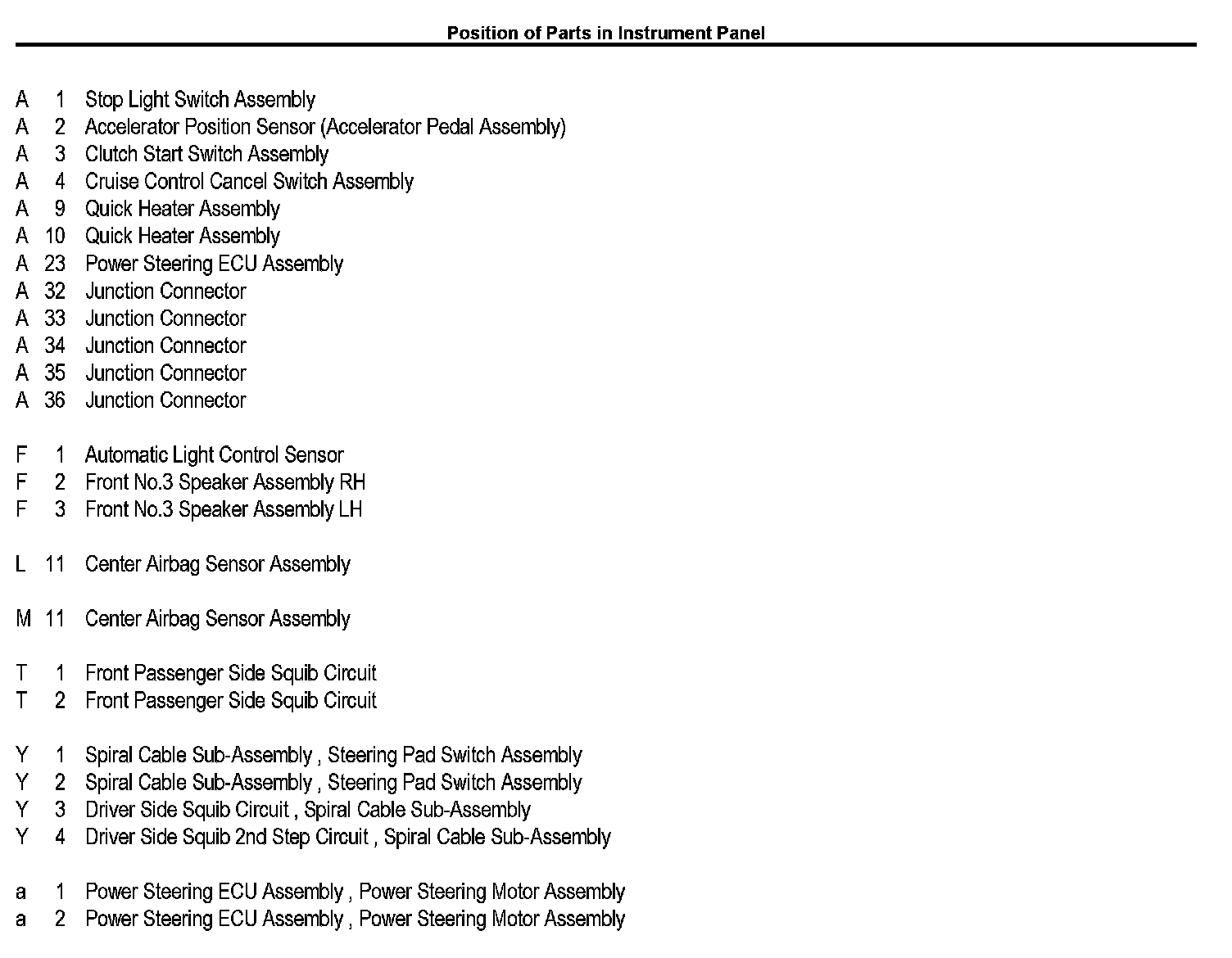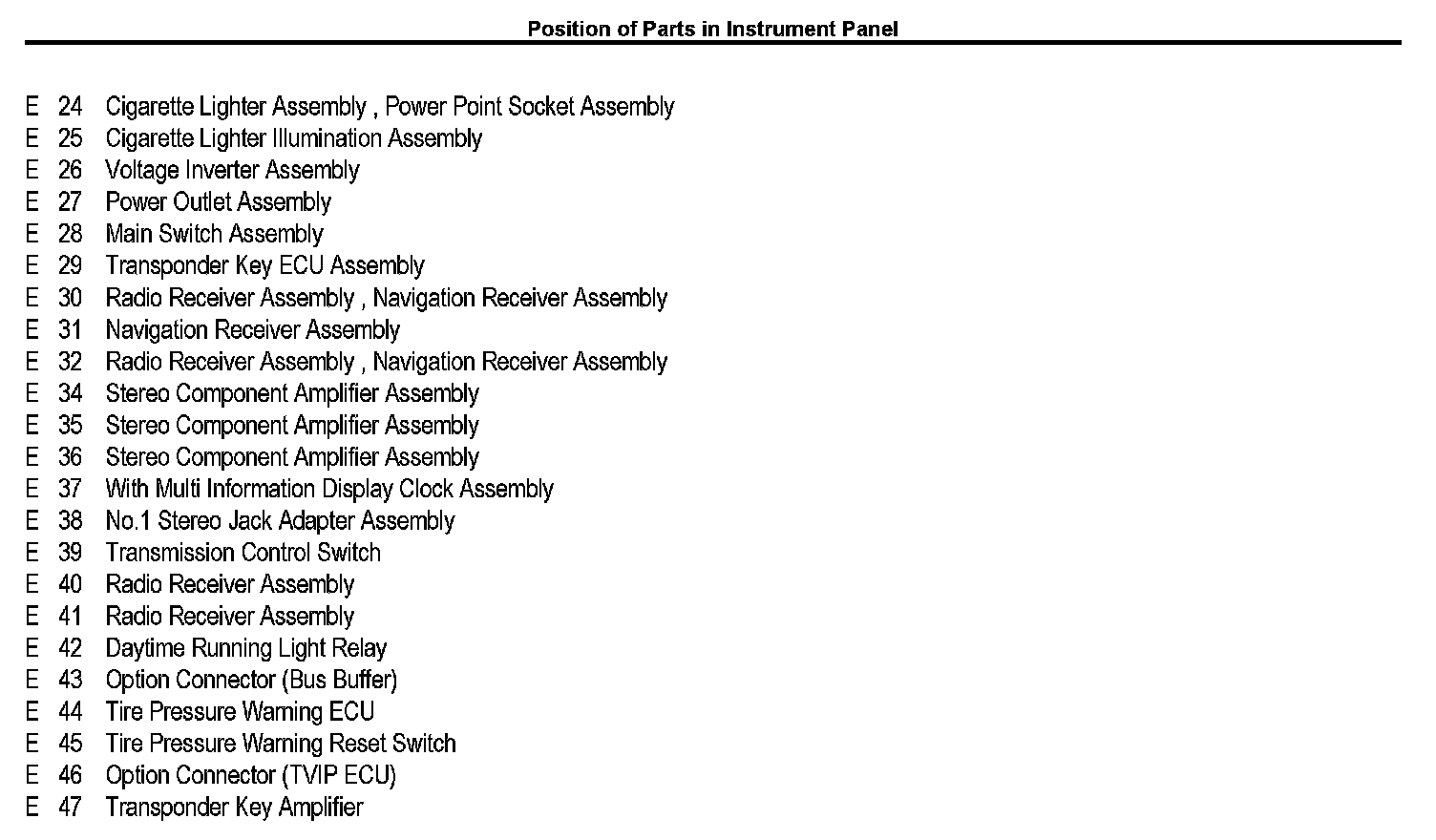 Position of Parts In Instrument Panel