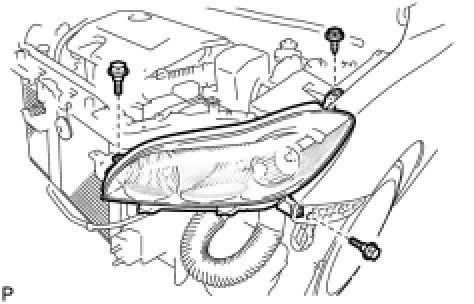 (c) Install the headlight assembly with the 2 bolts and screw.