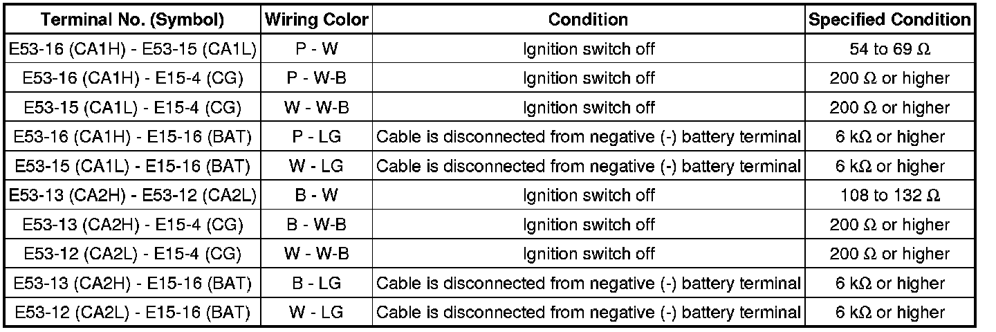 * Turn the ignition switch off before measuring the resistances of the CAN bus main wire and the CAN bus branch wires.
