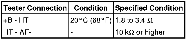 (2) If the resistance is not as specified, replace the air fuel ratio sensor.