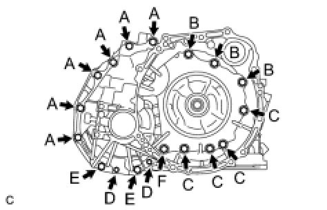 (c) Install the transaxle housing to the transaxle case and tighten the 18 bolts.