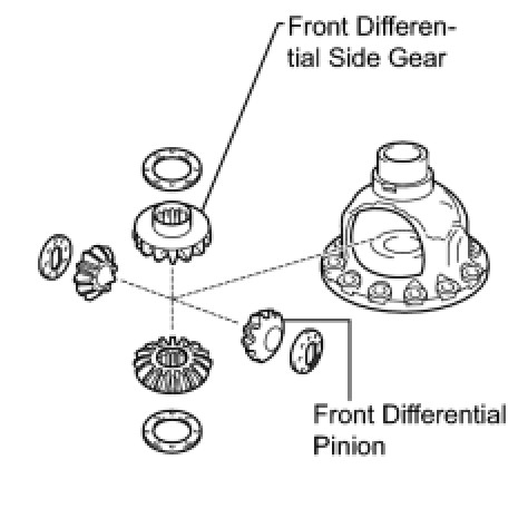 (a) Coat the 2 front differential side gears, 2 side gear thrust washers, 2 front differential pinions and 2 pinion thrust washers with ATF and install them to the differential case.