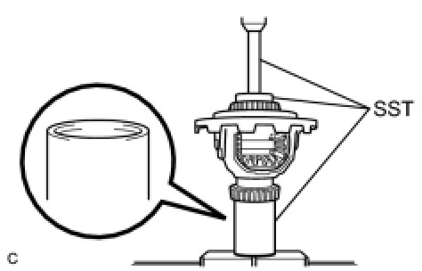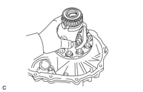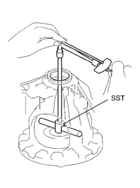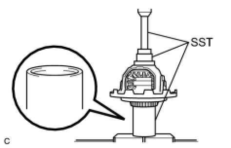 (d) Using SST, turn the differential assembly right and left 2 or 3 times to settle the bearing.