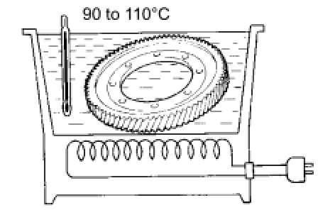 (a) Using ATF and a heater, heat the front differential ring gear to 90 to 110°C (194 to 230°F).
