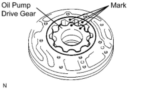 (a) Coat the front oil pump driven gear with ATF, and install it to the oil pump body with the marked side facing upward.