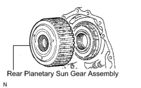 (a) Remove the rear planetary sun gear assembly from the transaxle case.
