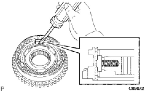 (c) Using a screwdriver, install the 3 No. 1 synchromesh shifting keys to the reverse gear.