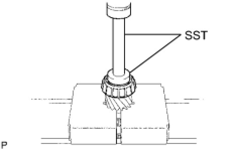 (a) Using SST and a press, install the output shaft front bearing (inner race) to the output shaft.