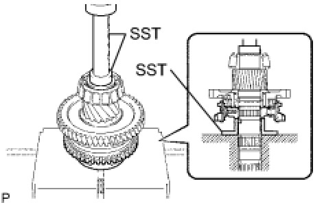 (a) Using SST and a press, install the No. 1 transmission clutch hub to the output shaft.